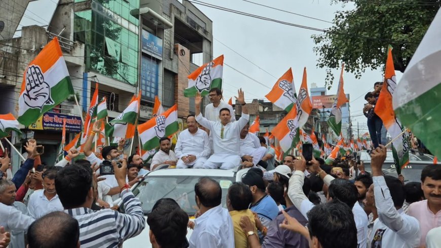 बरसते पानी में 15000 से अधिक कार्यकर्ता शामिल, एक किलोमीटर लंबी रैली,गरजे प्रदेश अध्यक्ष जीतू पटवारी,